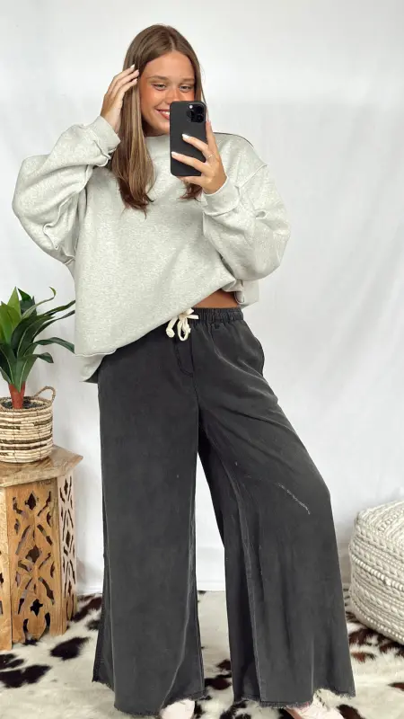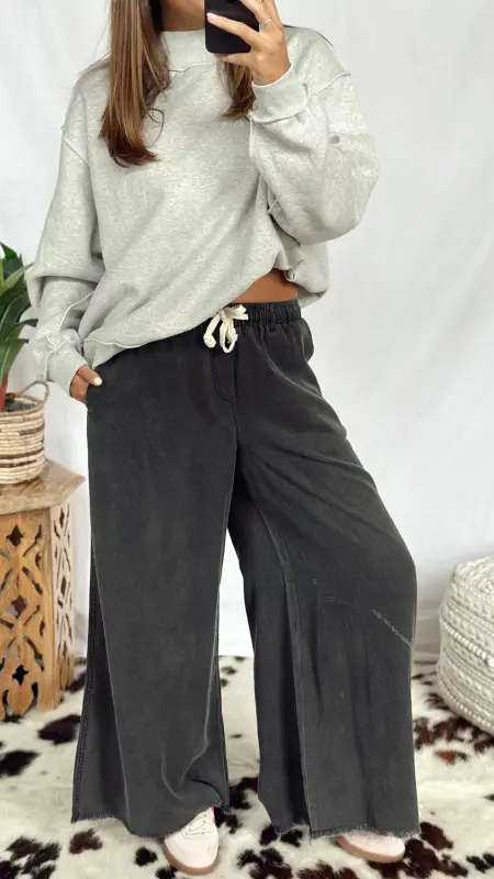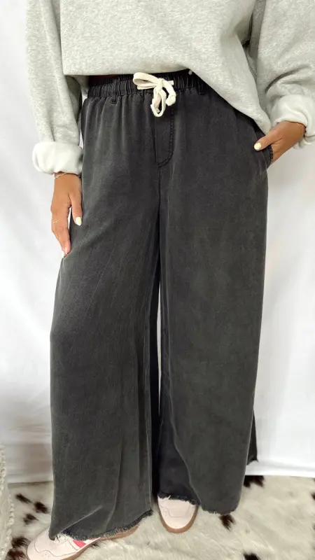 The Cadence Pants are your new go-to for comfort and style. Made from super soft fabric, these black pants flow beautifully with a wide-leg cut that moves with you. The cream adjustable tie at the waist adds a playful touch and lets you find the perfect fit. Plus, handy pockets keep your essentials close. Perfect for lounging or stepping out with ease!