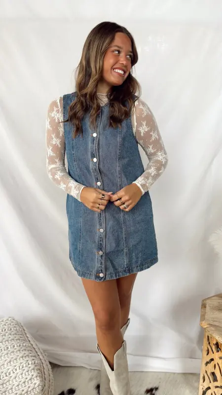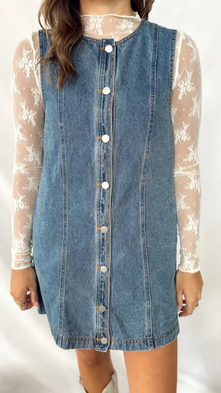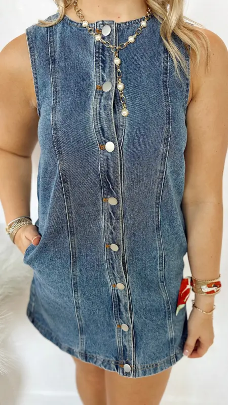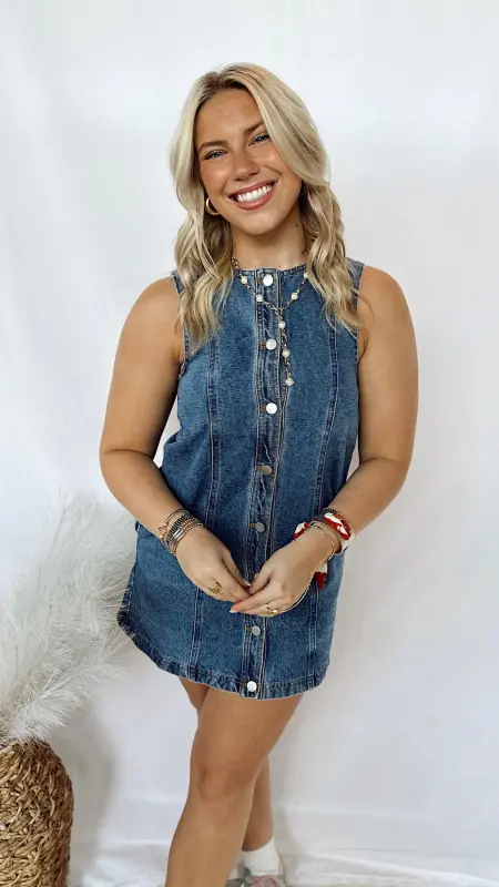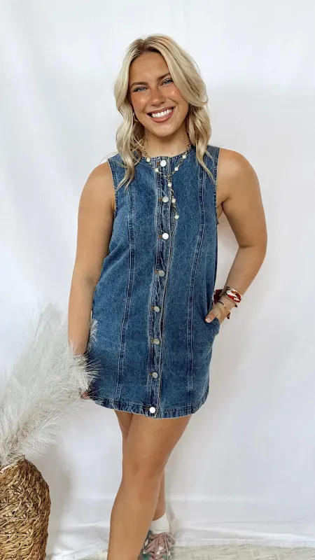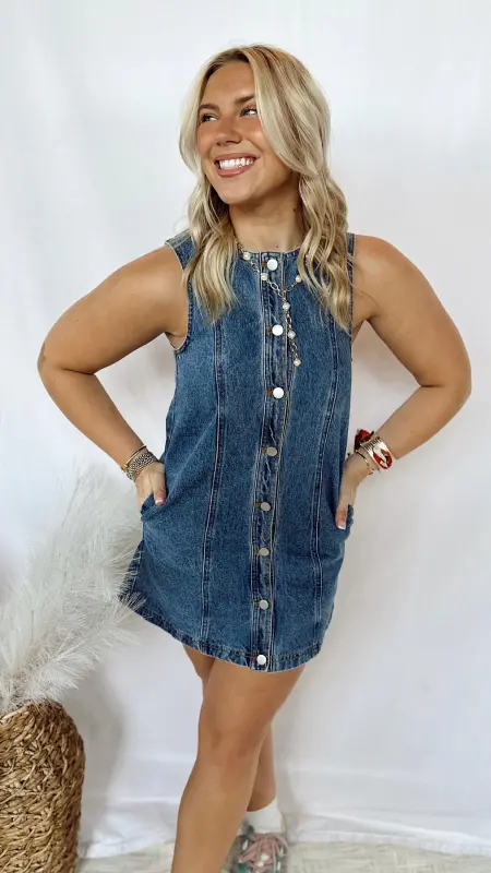 The Layla Dress is a playful button-down denim dress that’s perfect for any casual day. Its classic denim fabric pairs effortlessly with a relaxed fit, making it easy to wear from brunch to weekend adventures.