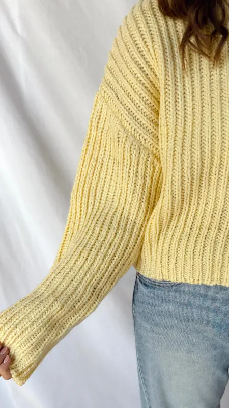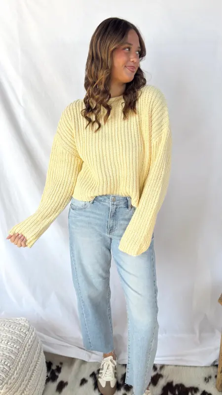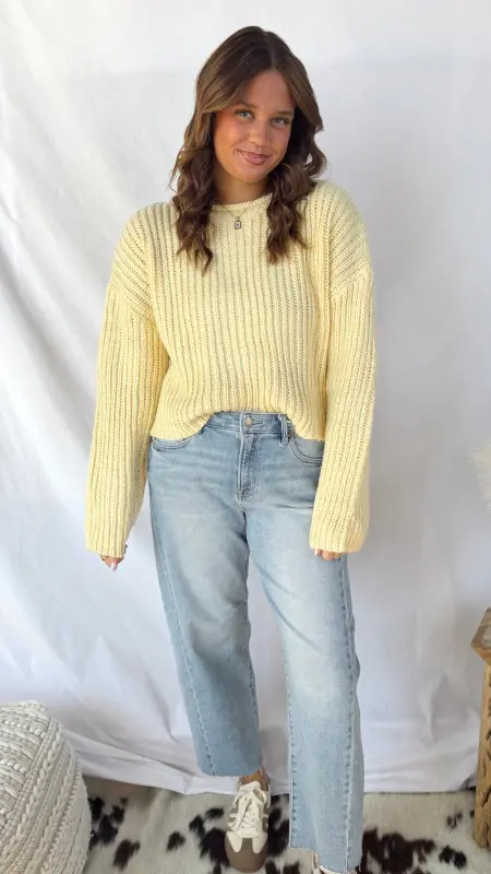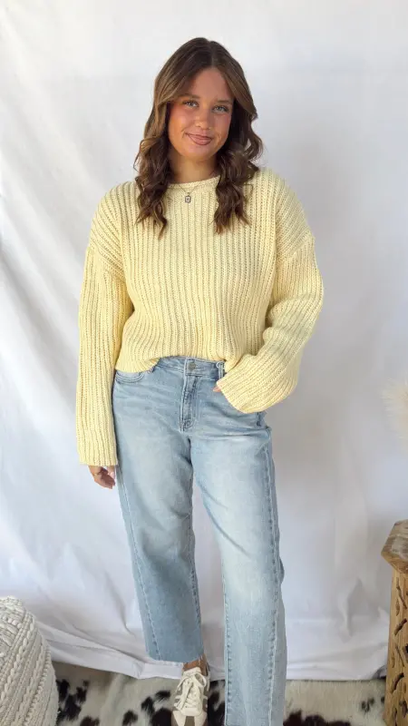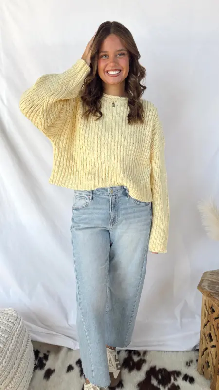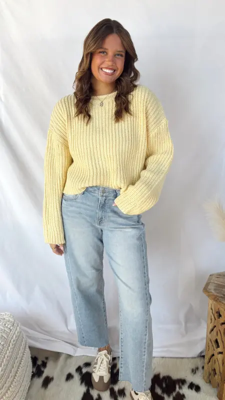 Wrap yourself in sunshine with The Sunny Sweater, a light yellow knit that’s impossibly soft and cozy. Perfect for layering or wearing solo, this warm sweater brings effortless comfort to your everyday style. Whether you’re curling up at home or heading out for a casual day, this cheerful piece keeps you snug while adding a bright pop of color to any outfit.